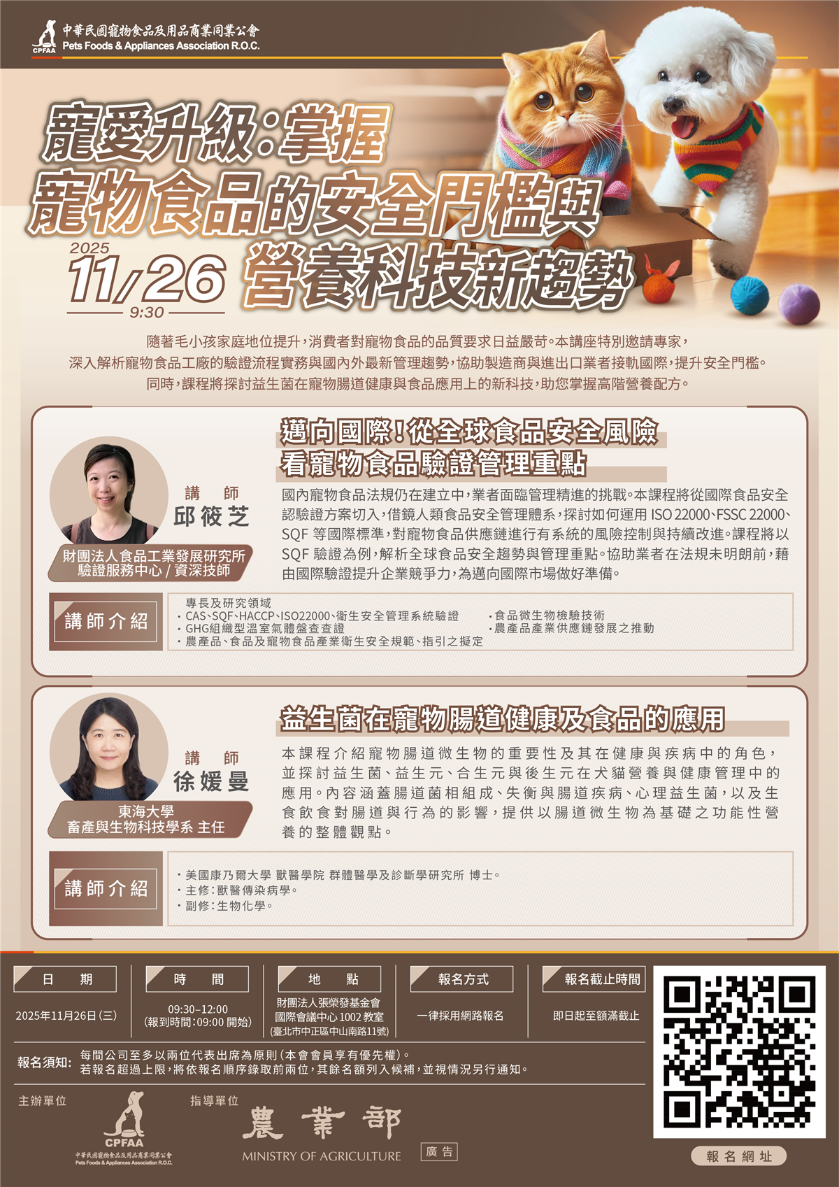 2025/11/26(三) 上午場-寵愛升級:掌握寵物食品的安全門檻與營養科技新趨勢